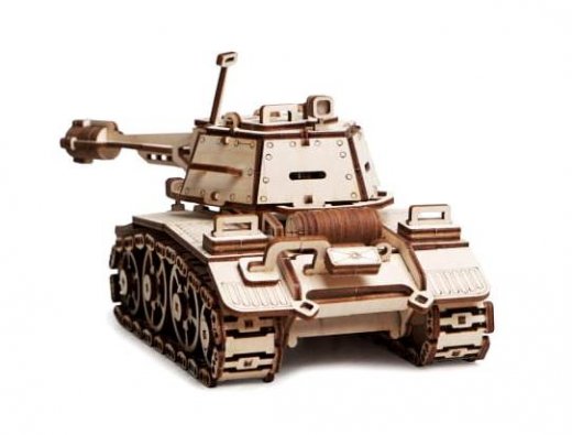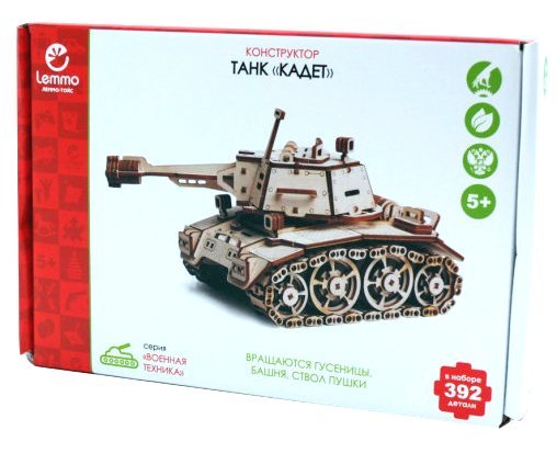 Деревянный конструктор "Танк Кадет" от компании "Леммо" - это отличный вариант расширить возможности для игры в конструкторы. Для начала можно себя почувствовать инженером и собрать танк из множества деревянных деталей. Потом его можно раскрасить любыми красками, карандашами или фломастерами, а уже потом начать увлекательную игру. У собранной модели вращаются гусеницы, башня, пушка.