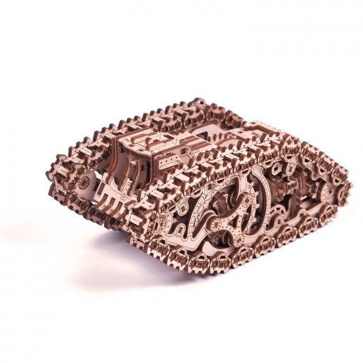 Деревянная модель "Стим Танк" от Wood Trick также заинтересует и взрослых, которые любят собирать всевозможные конструкторы или просто коллекционируют 3D-модели. Этот прототип фантастического Танка оснащен пружинным мотором. Для его запуска следует сделать 8-9 полных оборотов ручки, что позволит привести этот механизм в движение. При условии правильной сборки танк без труда преодолевает дистанцию в 5-6 метров. Несмотря на кажущуюся сложность этой модели, собирать ее можно за 6-8 часов. С этим может справиться не только взрослый, но и ребенок. Такой процесс способствует развитию мелкой моторики, и надолго увлекает даже шустрого непоседу. Ну а после сборки с этим деревянным танком-вездеходом, можно играть вечера напролет.