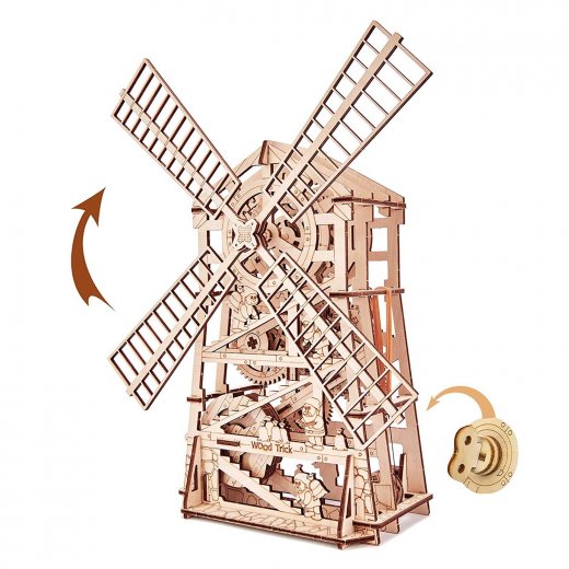 Механическая мельница – одна из самых популярных моделей, теперь с заводным механизмом. Чтобы запустить ее в работу, необходимо сделать несколько оборотов ключа и отпустить тормозной рычаг. И не нужен ветер, теперь лопасти мельницы могут крутиться, когда вам захочется и столько, сколько пожелаете.
