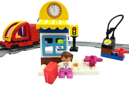 Играя с этим конструктором, ребенок сможет моделировать и обыгрывать ситуации на железной дороге и на станции, постигать навыки ролевой игры и азы правил дорожного движения, ведь в состав конструктора также входит светофор с тремя цветами и заправочная станция.