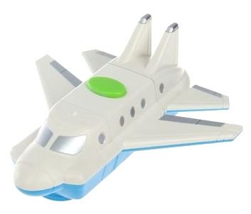 Чтобы привести транспорт в движение, необходимо вставить ключ-кнопку в верхнюю часть устройства, сразу после этого игрушка поедет в произвольном направлении. Как только малыш вынет ключик, воздушное судно остановится. Во время работы авиатехника имитирует шум взлёта и освещает лампочками задние крылья.