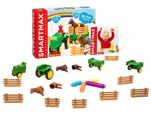 Мой первый набор с трактором от SmartMax приглашает вас на маленькую ферму. Усатый дядюшка перевозит в своей тележке двух лошадок. Пусть ребенок собирает модели и начинает сюжетную игру!