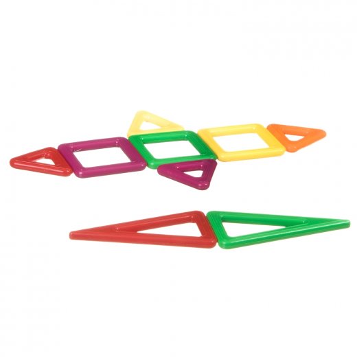 Магнитный конструктор Bondibon Магнитоформы – состоит из 9 разноцветных деталей квадратной и треугольной формы. Из этих оригинальных и достаточно крупных деталей, оснащенных магнитным креплением без поляризации, ребенку предлагается собирать различные комбинации, вариации построек и игрушек. Словно по волшебству, разложенные на плоскости детали соединяются в объемные конструкции, что приятно удивит ребенка и даст ему возможность наслаждаться интересной игрой.