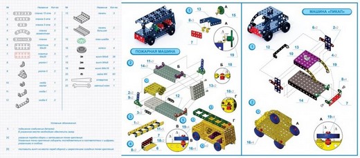 Ребенок сможет собрать пожарную машину, небольшие сани, тележку или же автомобиль «пикап». В наборе уже есть специальная инструкция, так что ребенок без труда справится со сборкой. Все детали сделаны из металла, они приятны на ощупь и имеют красочное покрытие.