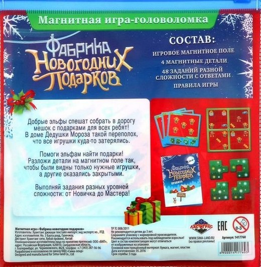 Купить Магнитную игру Фабрика Новогодних подарков в Новосибирске Вы можете в магазине развивающих и настольных игр "Игры Почемучек"