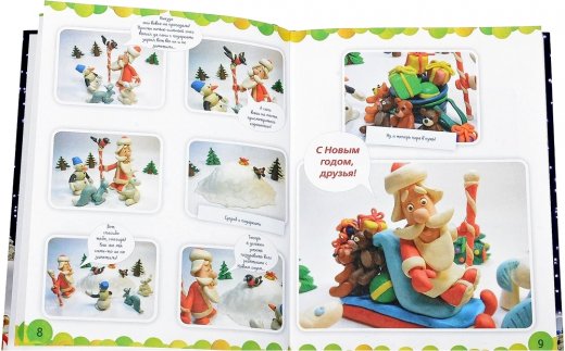 Подробные пошаговые инструкции сделают этот процесс очень простым и понятным, а красочные иллюстрации - ярким и веселым! Подарите детям праздник! Все дети обожают лепить из пластилина! Кроме того, это невероятно полезно для развития их креативности, вкуса и мелкой моторики пальцев. Так почему бы вам вместе не слепить новогоднюю сказку?