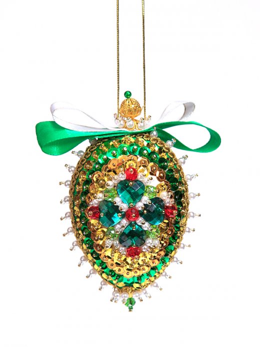 Следуйте рекомендациям в инструкции для достижения наилучшего результата. Используйте сантиметр и карандаш для измерения и разметки заготовки. Фиксируйте ленточки и бусины специальными гвоздиками. Пайетки располагайте вогнутой стороной вниз для достижения характерного рельефа. В центре шишки с обеих сторон выложите узор из камушков в форме сердечек и бусин, имитирующих драгоценности. Нанизывайте бисер на пины, чтобы скрыть места соединения элементов. На завершающем этапе работы дополните игрушку изящным бантом и подвесом на шнурке. Украсьте новогоднее дерево или интерьер комнаты для создания праздничной атмосферы.