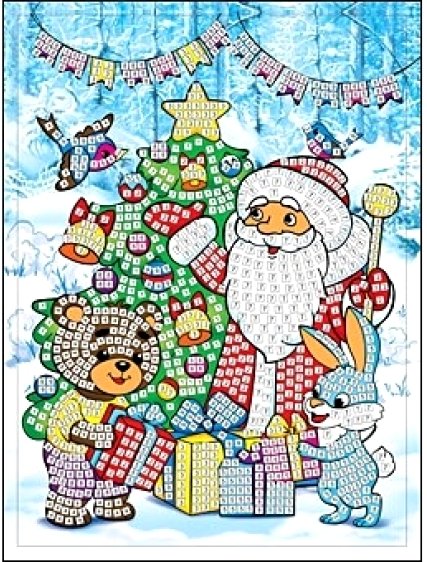 Мозаика мягкая Дед Мороз и зверушки – это прекрасный подарок для юных любителей творчества и поделок своими руками. Сделать мозаику довольно просто, но весьма интересно и увлекательно. Юному мастеру просто необходимо приклеить к пронумерованным областям на картинке детали соответствующих цветов и праздничная картинка с дедом морозо готова. Такой шедевр, изготовленный юным мастером, по праву должен будет занять самое видное место в доме как украшение интерьера.