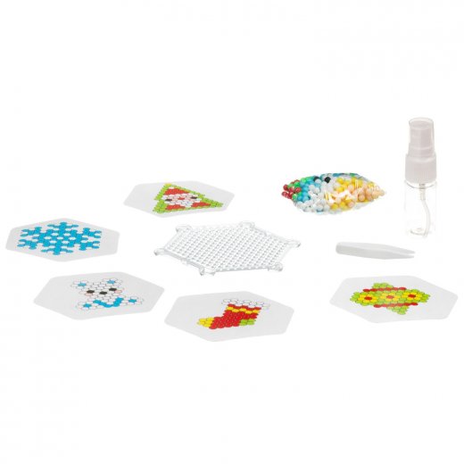Создайте необычные сувениры к Новому году. Предложите ребенку создать своими руками красочные фигурки, а помогут крохе в этом разноцветные бусинки, которые соединяются в единую поделку обычной водой. Аквамозаика под воздействием жидкости превращается в объёмную фигурку, с которой можно играть. Юному любителю творчества необходимо всего лишь выложить элементы мозаики по шаблону, внимательно подбирая цвета, побрызгать водой на получившееся изделие и подождать. Для полного высыхания фигурок потребуется 1-2 часа, после чего можно использовать их как героев для игры или как декоративное украшение.