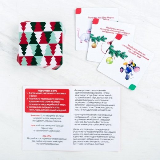 Разложите все карточки на столе рубашкой вверх. Теперь по очереди переворачивайте по две карточки. Если на карточках одинаковые картинки, зачитайте фант и выполните его. После этого можно забрать карточки себе. Если разные — их нужно вернуть на свои места рубашкой вверх. Победителем станет тот, у кого в конце игры будет больше парных карточек!