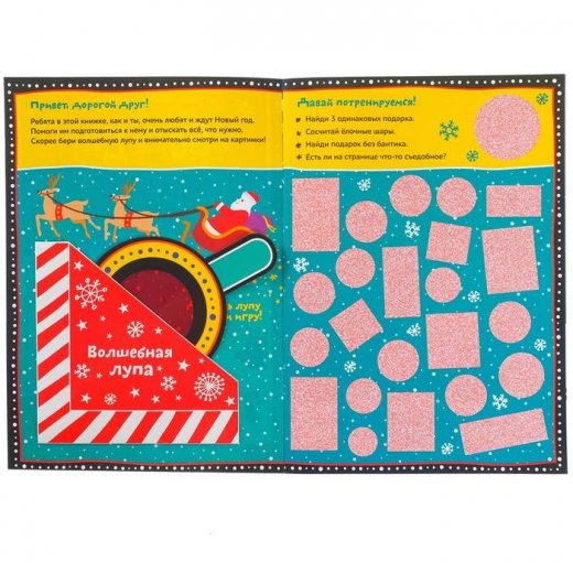 Новый год – это время волшебства, и в этой книге малыша ждут настоящие чудеса. На ее страницах спрятались самые разные предметы, но увидеть их очень просто – нужно лишь навести на них волшебную лупу.