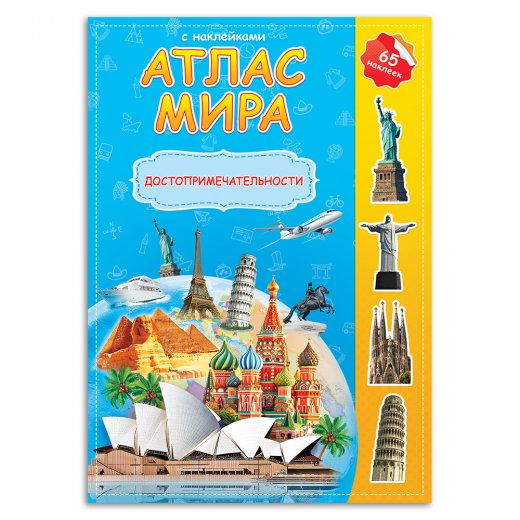 - Атлас мира с наклейками "Достопримечательности".