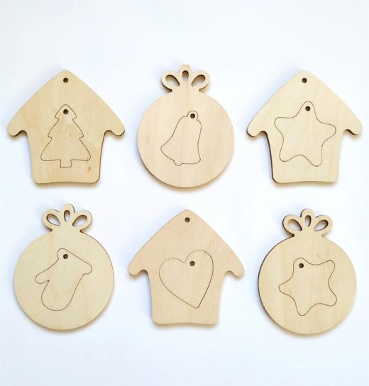 Особенность данного набора – экологически чистые игрушки, сделанные из качественной древесины. Такое украшение для елки подчеркнет уют и домашнюю атмосферу. На обработанную деревянную поверхность хорошо ложатся краски, фломастеры или карандаши, а также блестки и другие художественные материалы.