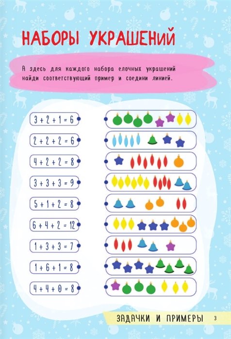 На этих страницах ребятам предлагаются разнообразные увлекательные задания: искать на необычных рисунках потерявшиеся предметы, находить выход из запутанных лабиринтов, показывать отличия между кажущимися совершенно одинаковыми картинками, решать головоломки и математические задачки. И все это представлено в виде забавных зимних игр в компании главного героя Нового года — Деда Мороза. Уверены: книга не только поможет детям развить логику, внимание, память и мышление, но и создаст праздничное настроение. Проведите зимние каникулы весело и с пользой