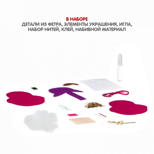 С этим набором ты сможешь сшить замечательную игрушку на ёлку из мягкого фетра. Его просто шить вручную, а готовое изделие можно немного растянуть для придания ему необходимой формы. Фетр, из которого мы будем шить игрушки, имеет очень яркие и сочные цвета! Все необходимое для шитья ты сможешь найти в наборе!