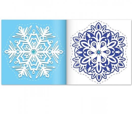С книгой аппликаций «Мои первые снежинки» малыш устроит дома новогоднюю мастерскую. С помощью ножниц ребёнок вырежет праздничный декор по заготовленным схемам, а затем украсит комнату получившимися зимними кристалликами.