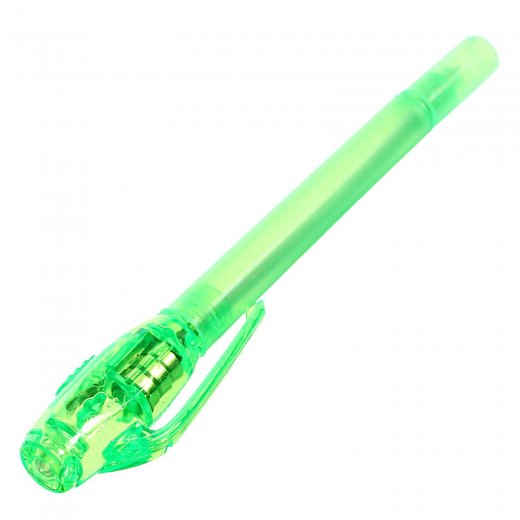 - У ручки-фонарика есть ещё одна функция — невидимые чернила. Снимите колпачок и напишите что-нибудь на листе бумаги, а затем посветите на надпись фонариком. Рисунок проявится.