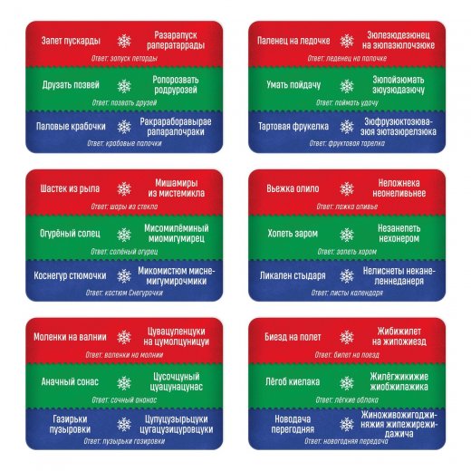 Вытягивайте карточки и на скорость переворачивайте странные словосочетания так, чтобы получились обычные фразы.