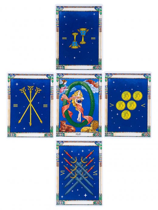 Таро из гибкого картона ( 22 старшего аркана, 56 младшего, 2 пустые карты), инструкция.
