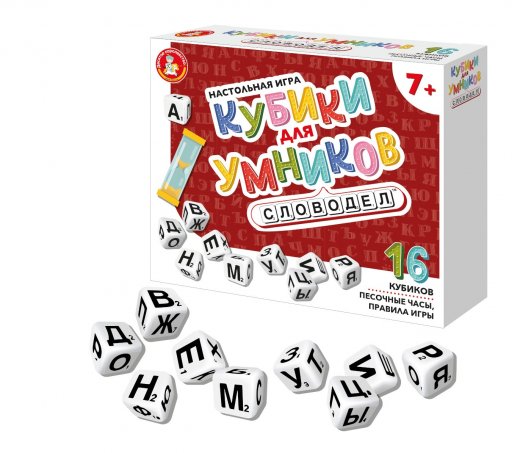Настольная игра «Кубики для умников. Словодел» способствует развитию навыков речи, расширяет словарный запас, позволяет в игровой форме изучить буквы русского алфавита.