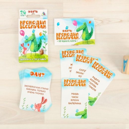 Эта занимательная игра 2 в 1 - "Крокодил" и "Фанты" - просто находка для весёлой детской компании! Вытягивайте карточки, показывайте слова жестами, выполняйте задания и становитесь победителем.