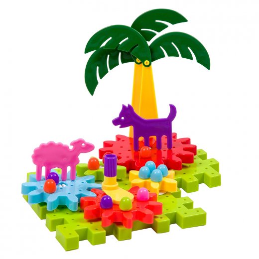 Конструктор познакомит ребенка с первым этапом машиностроения - с понятиями зубча́тое колесо́ или шестерня́. Также поможет развить творческие способности, абстрактное воображение, логическое мышление и мелкую моторику. Cостоит из блок-пазлов и шестеренок, которые соединяются друг с другом. Вместе детали образуют рабочие механизмы разных сложностей.