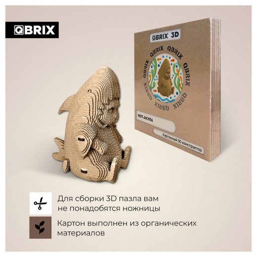 Картонный 3D пазл QBRIX Кот-акула — это интерьерный 3д конструктор из картона, изготовленный из органических материалов.