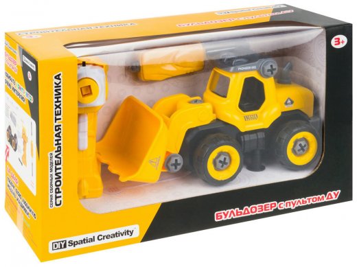 Состав набора: бульдозер, пульт, отвертка, шуруповерт, инструкция.