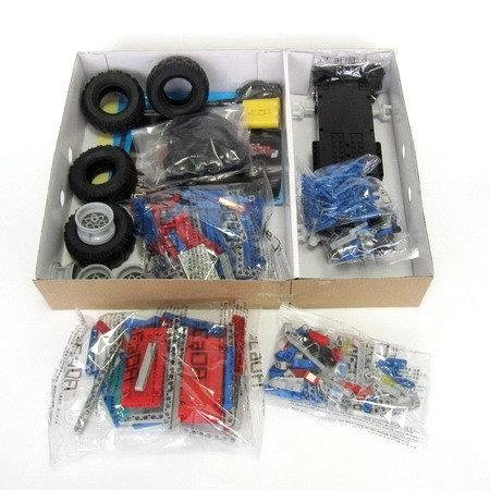 Состав набора: детали конструктора, пульт управления, зарядное устройство, аккумулятор, разъединитель пластиковых деталей.