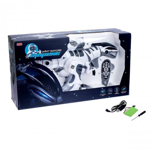 Состав набора: интерактивный Робо-динозавр, пульт управления, зарядное устройство, отвертка, присоски, инструкция.