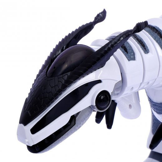 В голову динозавра встроены датчики, которыми он распознаёт предметы и ваши касания. Он умеет вращать головой, зажимать в челюстях легкие предметы и играть с ними как щенок. На спине у него установлена пушка, которая стреляет мягкими патронами.