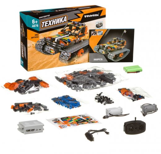 Конструктор "Техника Вездеход" - это настоящая находка для любителей конструирования транспортных средств. В комплект входит 392 детали конструктора, пульт, аккумулятор, зарядное устройство, инструкция по сборке. С помощью конструктора можно собрать вездеход на дистанционном управлении или множество других интересных вещей, которые сможет придумать ребенок. Размеры модели в собранном виде 22х17х22 см. Собранная модель работает на частоте 2,4ГГц. Время подзарядки аккумулятора 1,5 ч. Время игры 25 мин. Дальность действия пульта управления 20 м. Все детали изготовлены из высококачественной, безопасной пластмассы.