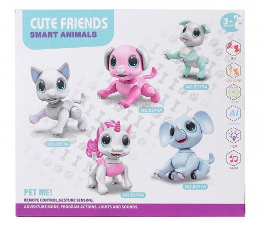 Робот питомец Пес - это занимательный игровой комплекс для маленьких любителей робототехники и животных. Игрушкой можно управлять не только с помощью радио-пульта, но и жестами. Робот поддерживает режим программирования, для этого в комплекте есть электронные косточки, в которых записаны команды. Все подробности в инструкции. Робот-питомец «Собака» ходит вперёд, назад, влево и вправо, бегает, прыгает, встаёт на задние лапы и садится. Благодаря такому разнообразию функций, пес доставит множество положительных эмоций ребенку. Пес работает на аккумуляторе, а вот для работы пульта управления необходимы будут батарейки типа ААА 2 шт.