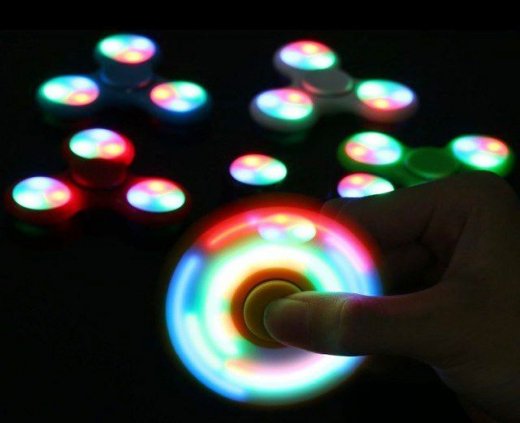 Спиннер светящийся пластиковый – представляет собой небольшой гаджет, состоящий из нескольких частей: корпуса на подшипнике, заглушки и светящихся элементов. Выглядит как плоская конструкция, которую можно привести в действие, ударив по боковой грани крыла, тем самым заставив ее крылья быстро вращаться. Вертушка-спиннер не только является стильной антистресс-игрушкой, но также и тренажером, который помогает держать в тонусе кисти и пальцы рук. Кроме того, в процессе взаимодействия с крутилкой для рук уменьшается волнение и стресс, улучшается концентрация внимания, снижается раздражительность, эмоциональное состояние приходит в норму.