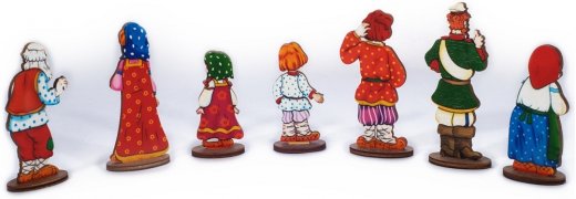 Фигурки выполнены из фанеры, окрашены с двух сторон. Краска нанесена непосредственно на дерево (не пленка), что делает рисунок долговечным. Такие фигурки можно использовать в различных сюжетных играх, при инсценировке сказок.