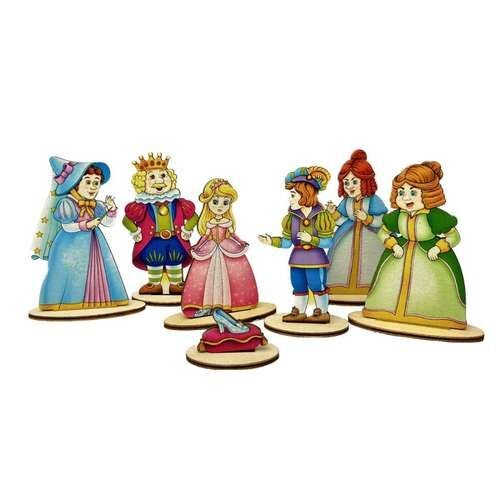 Изготовлено из фанеры. Комплект настольного театра «Золушка» состоит из 12-ти деревянных фигурок на подставках и книжки-вкладыша с адаптированным текстом сказки и методическими рекомендациями.