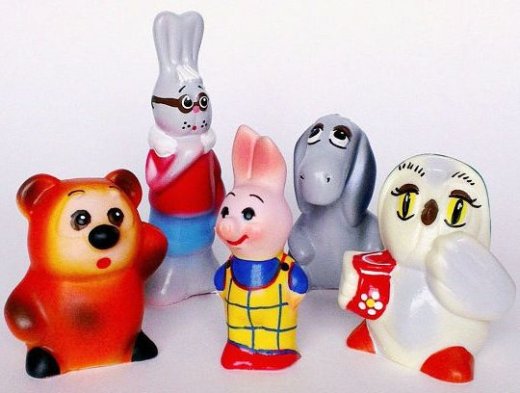 Кукольный театр Винни и его друзья – это замечательный подарок и развлечение для ребенка. Набор резиновых кукол предназначен для маленьких детей. Набор резиновых игрушек «Винни и его друзья» состоит из воплощенных в долговечном упругом материале фигурок знаменитого медвежонка и его верных друзей из известной сказки. Игрушки раскрашены в яркие цвета, при этом краски очень стойкие и внешний вид сказочных персонажей долгое время останется неизменным. Фигурки легко моются обычными средствами и прекрасно подходят для игр на улице и дома, в том числе и в ванной. С такими фигурками героев для кукольного театра можно разыграть настоящее представление. Поставьте фигурки и читайте, или рассказывайте по памяти сказку, а ребенка попросите выполнять действия фигурками. Если детишек будет несколько, то каждому предоставьте роль (играть фигуркой читаемые вами действия) и поверьте игра доставит малышу огромное удовольствие и подарит массу положительных эмоций.