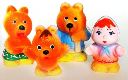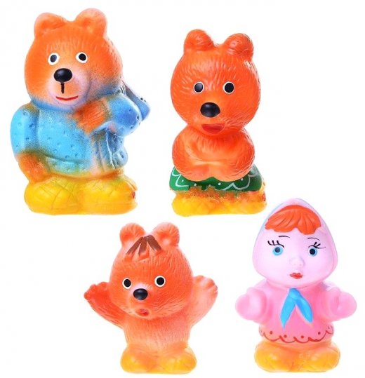 Кукольный театр Три медведя – это замечательный подарок и развлечение для ребенка. Набор резиновых кукол предназначен для маленьких детей. Набор резиновых игрушек «Три медведя» состоит из воплощенных в долговечном упругом материале фигурок медведей и девочки Маши из известной сказки. Игрушки раскрашены в яркие цвета, при этом краски очень стойкие и внешний вид сказочных персонажей долгое время останется неизменным. Фигурки легко моются обычными средствами и прекрасно подходят для игр на улице и дома, в том числе и в ванной. С такими фигурками героев для кукольного театра можно разыграть настоящее представление. Поставьте фигурки и читайте, или рассказывайте по памяти сказку, а ребенка попросите выполнять действия фигурками. Если детишек будет несколько, то каждому предоставьте роль (играть фигуркой читаемые вами действия) и поверьте игра доставит малышу огромное удовольствие и подарит массу положительных эмоций.