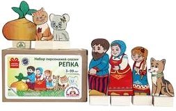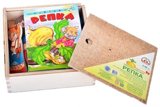 Состав набора: фигурки репки, дедки, бабки, внучки, Жучки, кошки, мышки, 7 подставок, книжка "Репка".