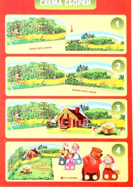 Состав набора: персонажи сказки, декорации, сценарий, инструкция по сборке.
