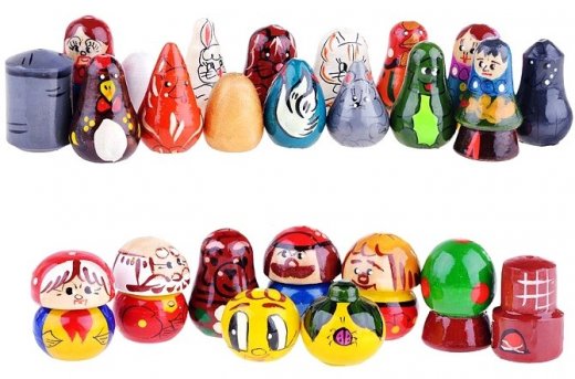 Состав набора: 25 деревянных фигурок и прочих деталей.