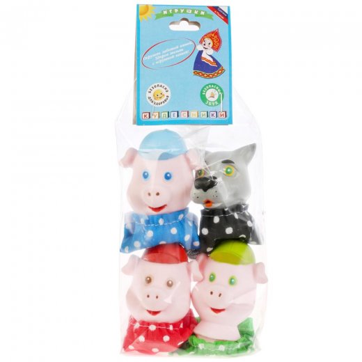 Пальчиковый театр Три поросенка может стать замечательным приобретением для девочек и мальчиков. С этим театром ваш малыш попадёт в волшебный мир, где ожившие герои сказок расскажут ему о своих приключениях. Набор состоит из фигурок надеваемых на пальцы руки взрослого или ребенка.