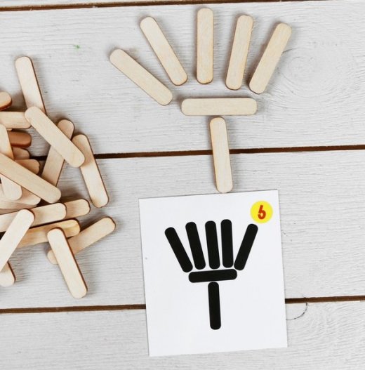 Предложите ребенку составить из палочек предметы и животных, изображенных на карточках. А затем попросите ребенка придумать свои силуэты животных, транспорта, предметов, букв русского алфавита и цифр. Также можно использовать палочки как счетный материал или обводить палочки на бумаге, составляя различные узоры и орнаменты.