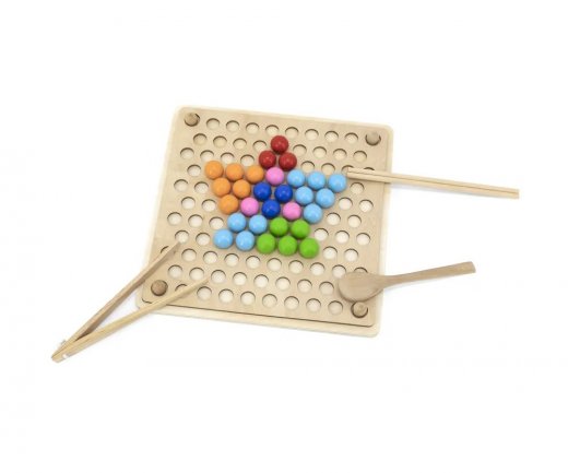 С 10 прекрасно иллюстрированными рисунками, бусинами и палочками для еды, щипцами или ложками, это отличная головоломка для маленьких детей, предназначенная для развития мелкой моторики и зрительно-моторной координации.