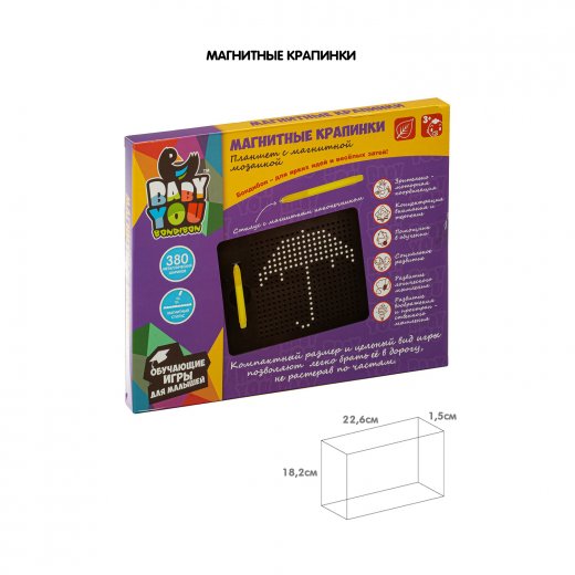 Мозаика "МАГНИТНЫЕ КРАПИНКИ" серии Baby You от ТМ Bondibon - развивающая мозаика для малышей и отсутствие разбросанных элементов, т.к. шарики никак не могут выпасть из корпуса планшета. Магнитная мозаика станет отличным подарком и поможет обучить ребёнка письму в дошкольном возрасте и развить творческое воображение и мелкую моторику.