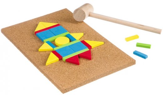 Состав набора: 40 деталей, гвозди, пробковая основа, рабочий план, деревянный молоток.