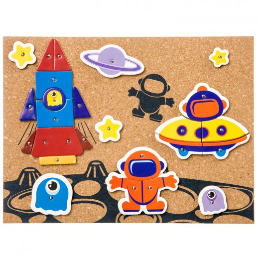 Состав набора: пробковая основа, деревянный молоток, гвоздики, детали из прессованного картона, схема - инструкция.