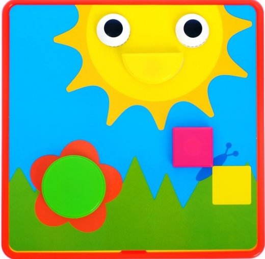 Выберете картинку, вставьте в удобные пазы под игровым полем и устанавливайте фишки в соответствии с цветом и местом на поле. Форма фишек разработана специально для удобства захвата маленькими детскими ручками. Мозаика комплектуется также чемоданчиком куда удобно складывать фишки, картинки и игровое поле.