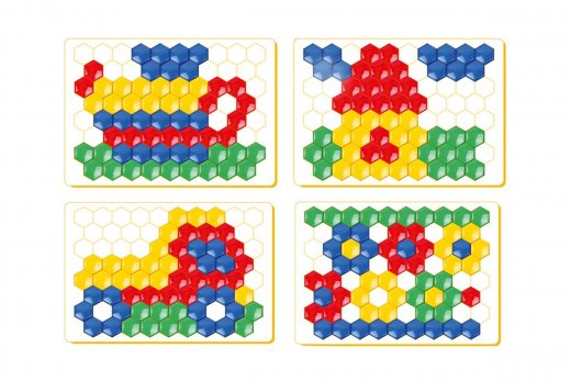 Мозаика для малышей Технок - это увлекательная обучающая и развивающая игра для малышей. Она абсолютно безопасна для детей, крупные шестигранные фишки размером 40 миллиметров невозможно проглотить, а яркие картинки заинтересуют вашего непоседу. Особенность мозаики заключается в форме фишек – шестигранная форма напоминает пчелиные соты, а форма выступов на плате позволяет легко и правильно установить элементы. Установите плату на ровную горизонтальную поверхность и выберите картинку, а затем подбирайте подходящие фишки по цвету и форме и поставьте фишки на плату.