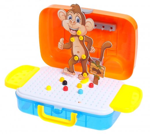 Кроме того детям, да и их родителям полюбится внешний вид детского конструктора с шуруповертом. Ведь он представляет собой переносной чемоданчик. Одна из его стенок это игровое полотно, на котором и создаются картины. Если нужно собрать все элементы игры на хранение или с собой в дорогу, то они славно поместятся внутри кейса. Чтобы ребенку было проще создавать картины, в комплекте предусмотрена инструкция, по которым можно собрать красочные узоры и объемные вертикальные фигуры.
